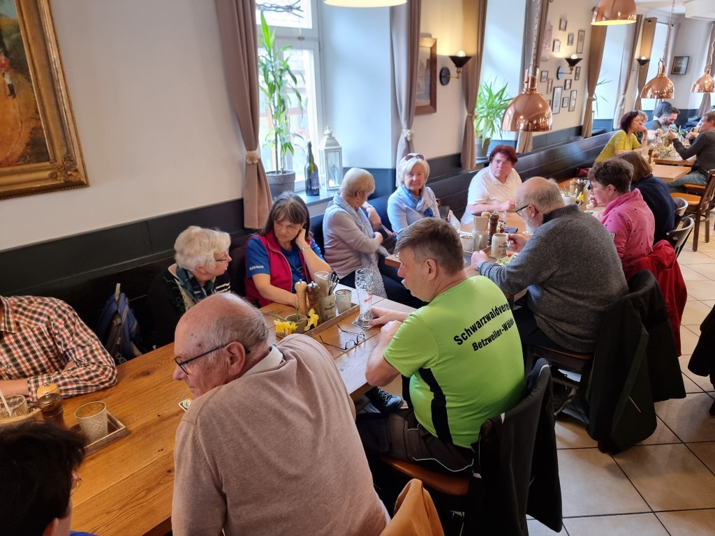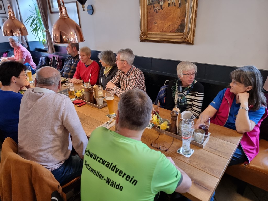 Vorneweg gleich mal eins: herzlichen Dank an den Ettlinger Ortsverein. Es war eine sehr schöne gemeinsame, kleine Wanderung bei frühlingshaftem Wetter in Ettlingen und teilweise auf dem Ettlinger Panoramaweg mit einer schönen Stadtführung und Schlußeinkehr im Badischen Hof. Bei leckerem Essen und guten Gesprächen ist Lust auf mehr gemeinsame Aktivitäten entstanden, so das wir unsere Ettlinger Wanderfreunde umgehend zu einer Wanderung bei uns im Schwarzwald im nächsten Jahr eingeladen haben. Und zu einer informativen Reise ins nördliche Elsass wurden wir ebenfalls schon eingeladen. Schau’n wir doch mal, was daraus wird?