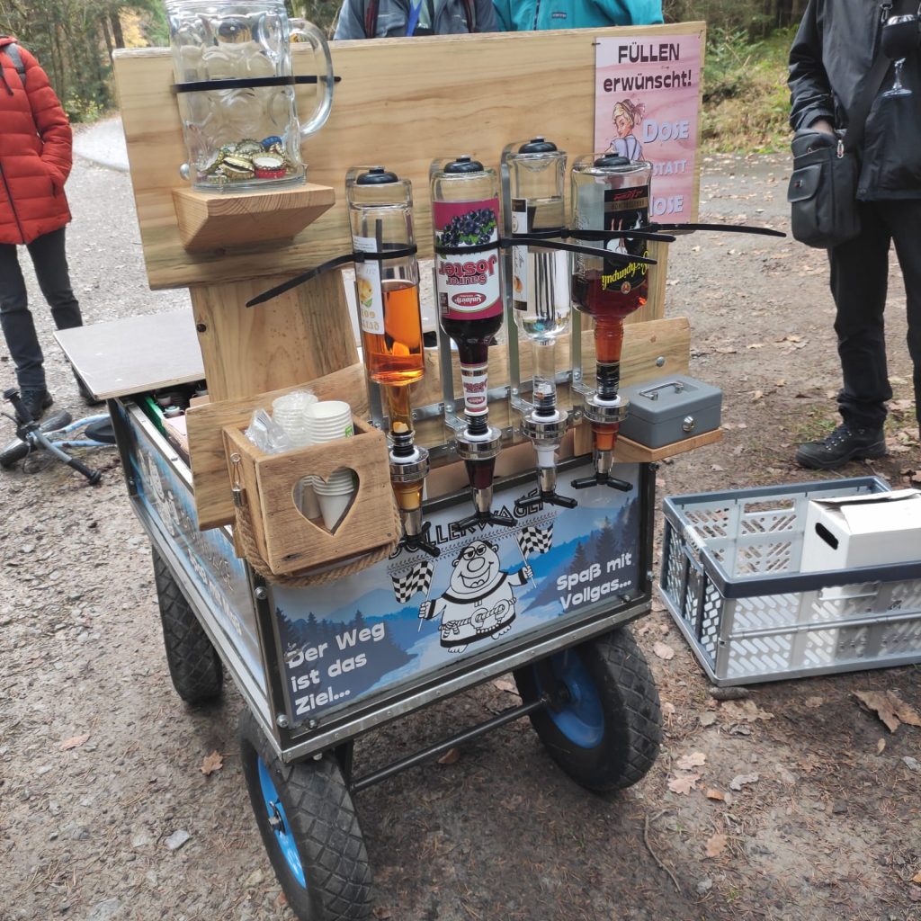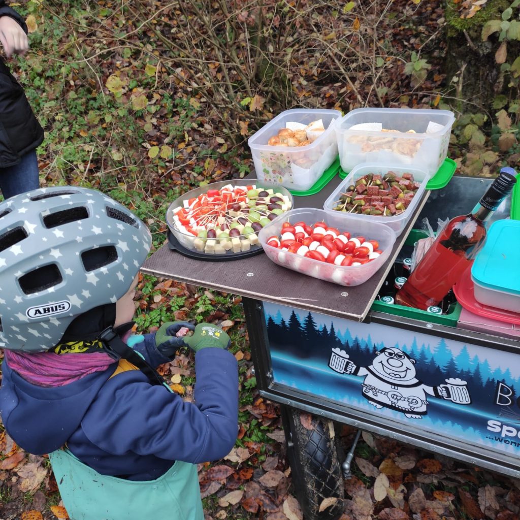 Immer tieferging es ins Tal hinein und wir kamen zum Märtesweiher, einem künstlich angelegten kleinen See, welcher den idealen Lebensraum für verschiedene Tier- und Pflanzenarten bietet. Vorbei ging es am Genussplatz am Simonsbrunnen und immer weiter bis zur Stoffelshütte, wo wir erneut eine kleine „Zwangs-Regen-Pause“ einlegten.