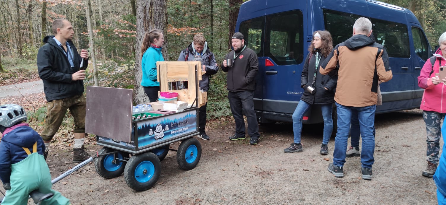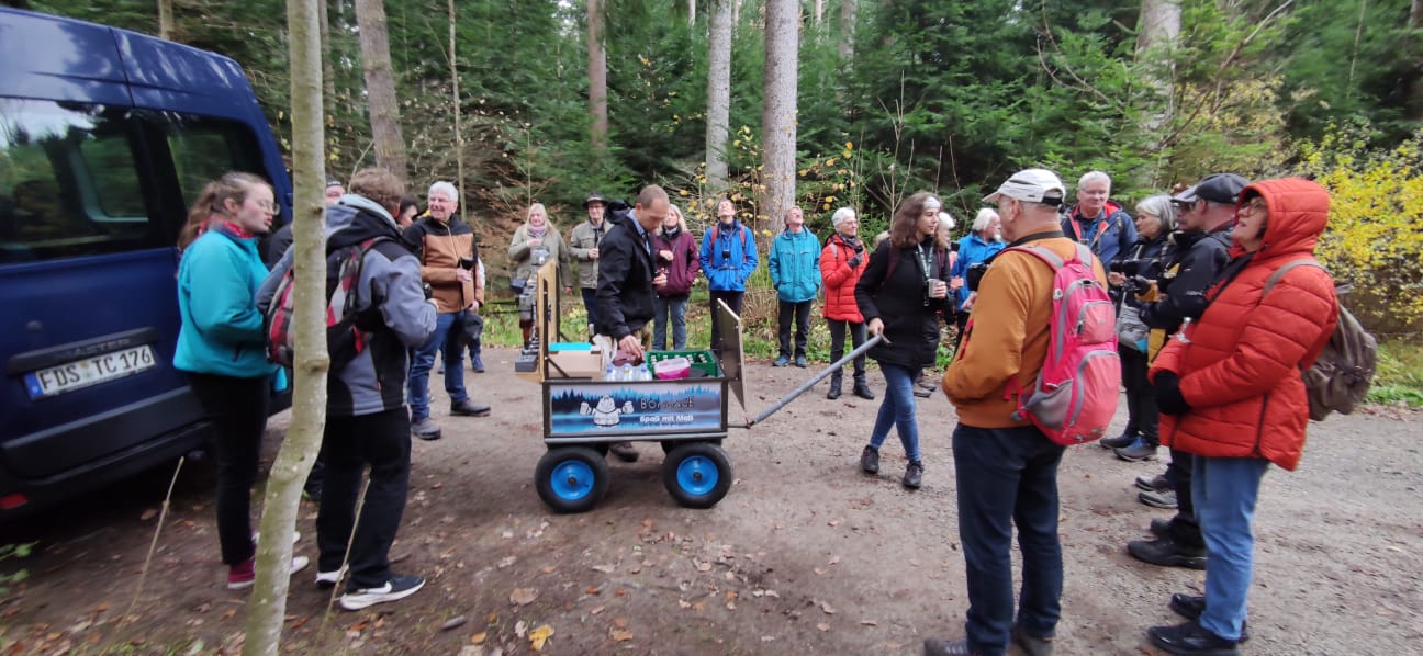 Nachdem alle 18 Teilnahmer plus zwei Kleinkindern am Startpunkt Wutachmühle angekommen waren wurde nach einer kurzen Begrüßung durch Martina & Rolf sowie Martin kurz der Tagesablauf vorgestellt und dann ging es auch gleich zur Bushaltestelle, denn zunächst fuhren wir erst mit einem Bus zum eigentlichen Start der Wanderung am Eingang der Lotenbachklamm.
